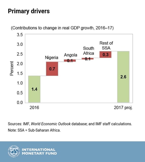 The broad-based slowdown in sub-Saharan Africa is easing, and growth is expected to pick up to 2.6 percent in 2017 from last year's 1.4 percent, the IMF said in its latest Regional Economic Outlook for sub-Saharan Africa.