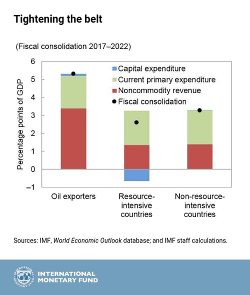 While fiscal consolidation is most pressing in oil-exporting countries, other countries can use this opportunity to focus on raising revenues and making room for outlays on health and education, and other spending that have positive social impact and long-term growth effects.