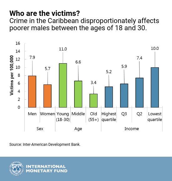 According to the 2012 UN Caribbean Human Development Report, young people are both the primary victims and perpetrators of crime in the region. Victims of violent crime are predominantly between the ages of 18 to 30 and from lower levels of income, while 80 percent of prosecuted crimes were committed by people aged 17 to 29 years.