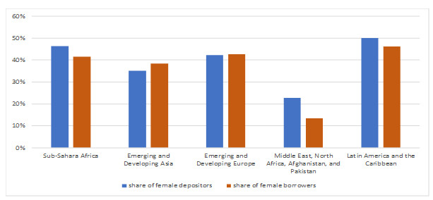 Figure 2. Shares of Female Depositors & Female Borrowers by Region (2016)