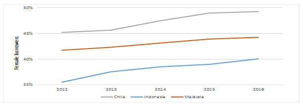 Figure 3. Share of Female Borrowers (2012–16)