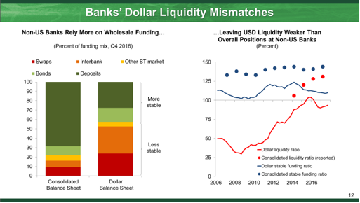 While most large banks have strengthened their consolidated capital and liquidity positions since the global financial crisis, the non-U.S. banks face structural U.S.-dollar liquidity mismatches.
