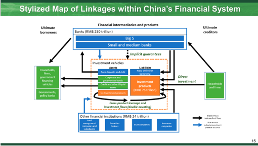 This chart gives us a stylized view of China’s banks and nonbank financial institutions.