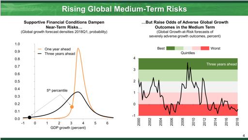The IMF’s Global Financial Stability Report, which we published last week, found that, while global growth momentum remains strong, short-term risks have increased recently amid rising trade tensions, while medium-term risks to growth and financial stability remain elevated.
