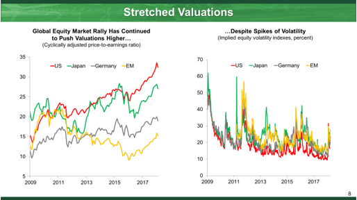 - Short-term risks to global financial stability have increased over the past six months — as stock-market volatility has risen, and as investors have grown more concerned about geopolitical tensions, especially over trade policy.