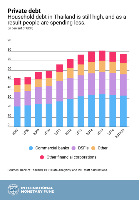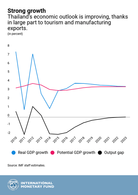 Thailand’s economic outlook is improving. Growth is estimated at 3.9 percent in 2017—the fastest pace on an annual basis since 2013—but it has yet to become broad-based. To secure growth that benefits everyone, the country will need to implement key reforms to raise domestic demand and prepare for the impact of an aging population, said the IMF in its latest annual assessment.