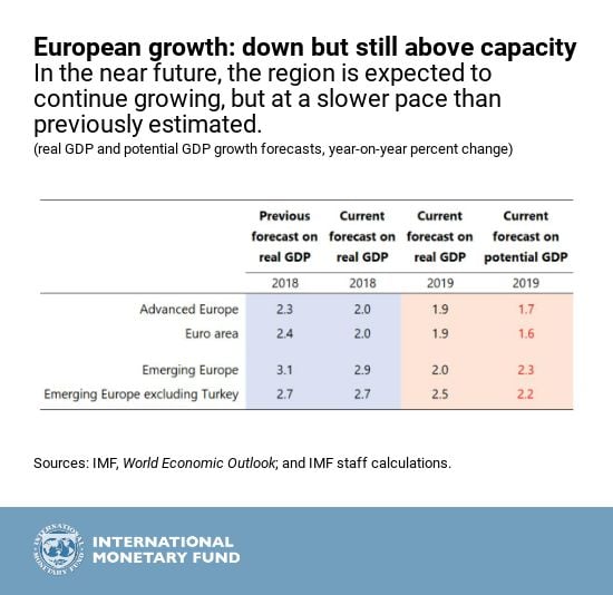 Europe’s economy continued to expand in the first half of 2018, although at a slower-than-expected pace, specifically in advanced Europe. Driven by domestic demand, economic activity continued to expand in the first half of 2018, the IMF said in its latest health check of Europe’s economy. But the outlook is less favorable, with several forces likely to hamper economic growth.