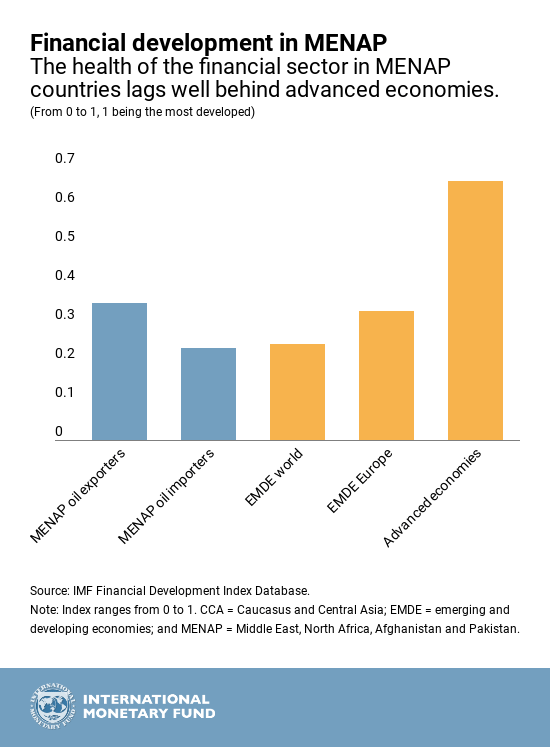 This is not just a challenge for the region’s oil-importing countries. The richer oil exporting countries are behind their advanced economy peers on various governance and financial development measures. In particular, further financial development to the level of the average advanced economy could yield almost 2 percentage points of GDP in additional private investment.