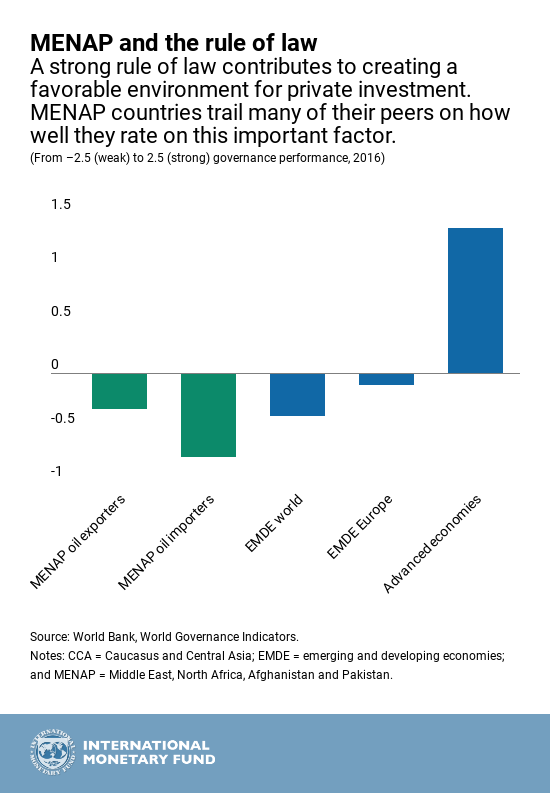 Facing increasing global headwinds, MENAP countries need to urgently unlock private investment. That will take more and higher-quality investment in education and infrastructure, and policy reforms to increase access to finance and improve the effectiveness and governance of the public sector.