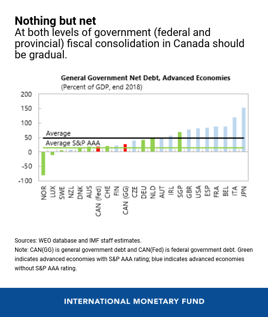 The planned adjustment is appropriate at the federal level but provincial governments should do more to create more spending room. This will help ensure that both levels of government have enough room to respond in case of a downturn and reducing debt faster would provide more options to handle future challenges, such as those related to aging and weak productivity growth.