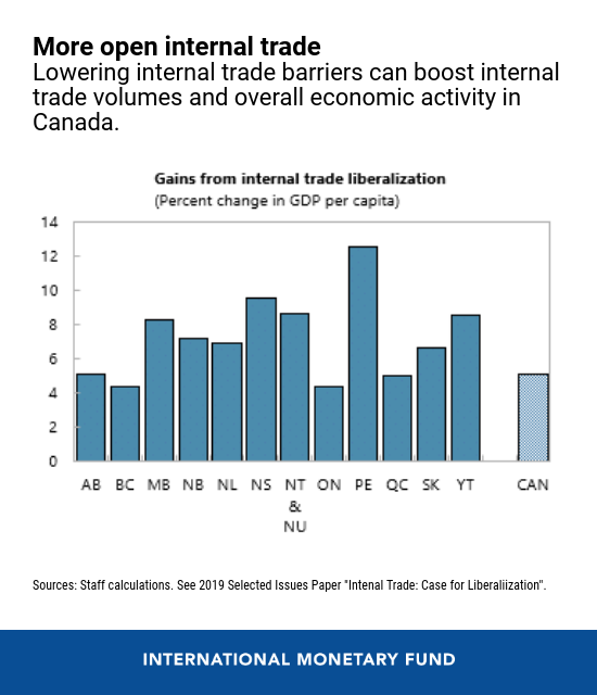 Staff analysis suggests lowering non-tariff trade barriers could increase real GDP per capita by almost 4 percent—a much larger gain than expected from recently-signed international trade agreements. With much at stake, federal, provincial and territorial governments should make reducing internal trade barriers their common priority.