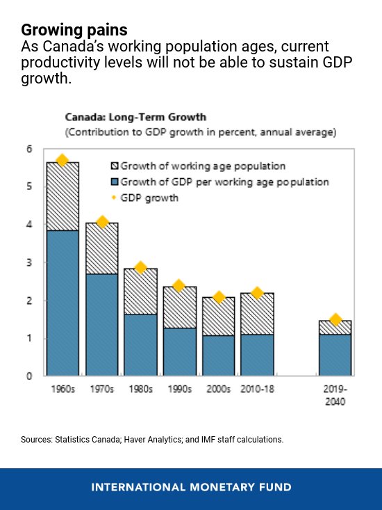 To sustain long-term growth, Canada will need to continue preserving financial stability, as well as focus on policies that boost productivity through export diversification, lower internal trade barriers, and higher infrastructure investment, the IMF stated in its latest annual economic assessment.