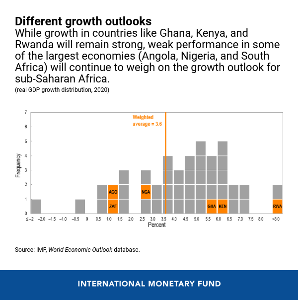 Growth in sub-Saharan Africa is expected to pick up, though at a slower pace than previously expected. This revision reflects a more challenging external environment, continued output disruptions in oil-exporting countries, and weaker-than-anticipated growth in South Africa.