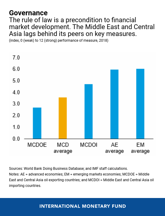 Countries can also take steps to reduce vulnerabilities. Building foreign reserves and, where feasible, allowing exchange rates to adjust and absorb shocks can help insulate economies from the impact of capital flow volatility. Continued financial market development is also vital to helping countries absorb large capital flow fluctuations and the economic shocks that come with them. Strong regulatory frameworks are essential to this effort. Bahrain, Saudi Arabia, and the United Arab Emirates have all worked to modernize their bankruptcy laws—more reforms like this are needed throughout the Middle East and Central Asia.