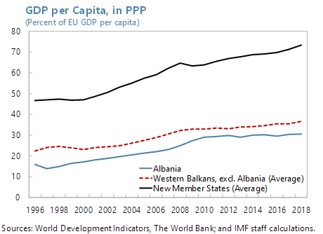 While Albania has maintained economic stability, growth this year has fallen mainly due to lower electricity production and, looking ahead, the slowdown in key partner countries and heightened political uncertainty present important downside risks. At the same time, with per capita income at a quarter of the EU average, much stronger growth is needed. Weaknesses in Albania’s infrastructure and economic institutions impede a broad and sustained improvement in living standards. Better governance can help attract investment, reduce emigration, and limit crisis risks.
