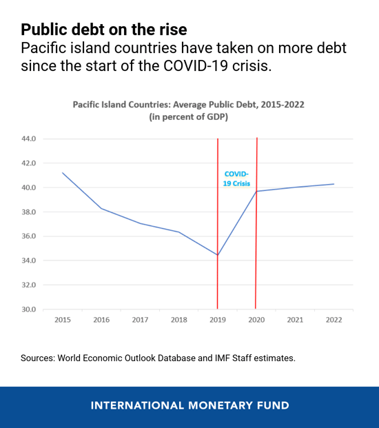 However, most countries in the region have limited room to counter the economic impact of the pandemic through additional spending. Public debt among the Pacific islands, on average, has already risen since the end of the global financial crisis. Now, some countries have announced fiscal packages that include, for instance, additional health spending, temporary cash transfers for displaced workers, and credit support to small and medium-sized firms and affected sectors.
