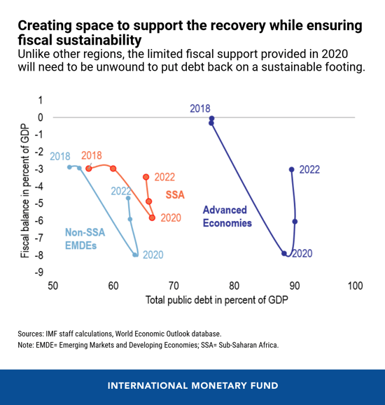 - To create space to support the recovery, the health of public and private balance sheets needs to be restored. Sub-Saharan African countries entered the crisis with elevated debt