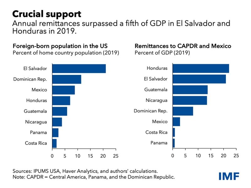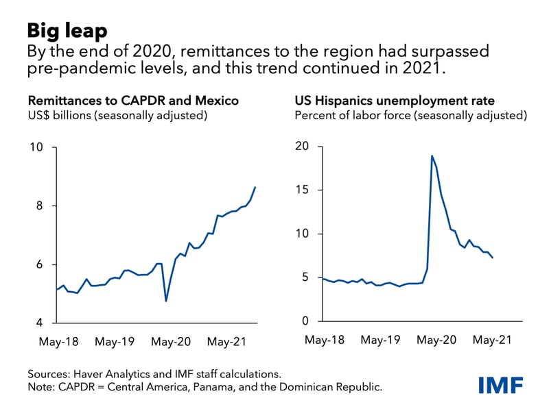 Remittances—the money sent from citizens working abroad to families back home—are a crucial source of income in Central America, Panama, and the Dominican Republic (CAPDR) as well as Mexico. Despite an expected decline at the onset of the pandemic, remittances surprisingly increased in 2020, hitting record levels in 2021. IMF staff research explores why remittances from the US to CAPDR and Mexico remained resilient during the pandemic.