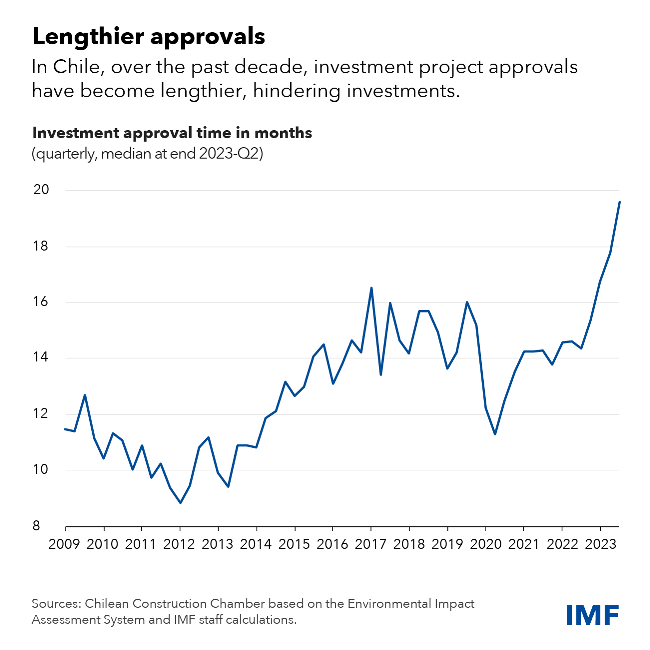 While Chile’s economy is projected to resume growth in 2024, its average real economic growth rate has been declining for many years alongside negative productivity growth. Therefore, strengthening investment is critical to sustainably raise and diversify economic activity.