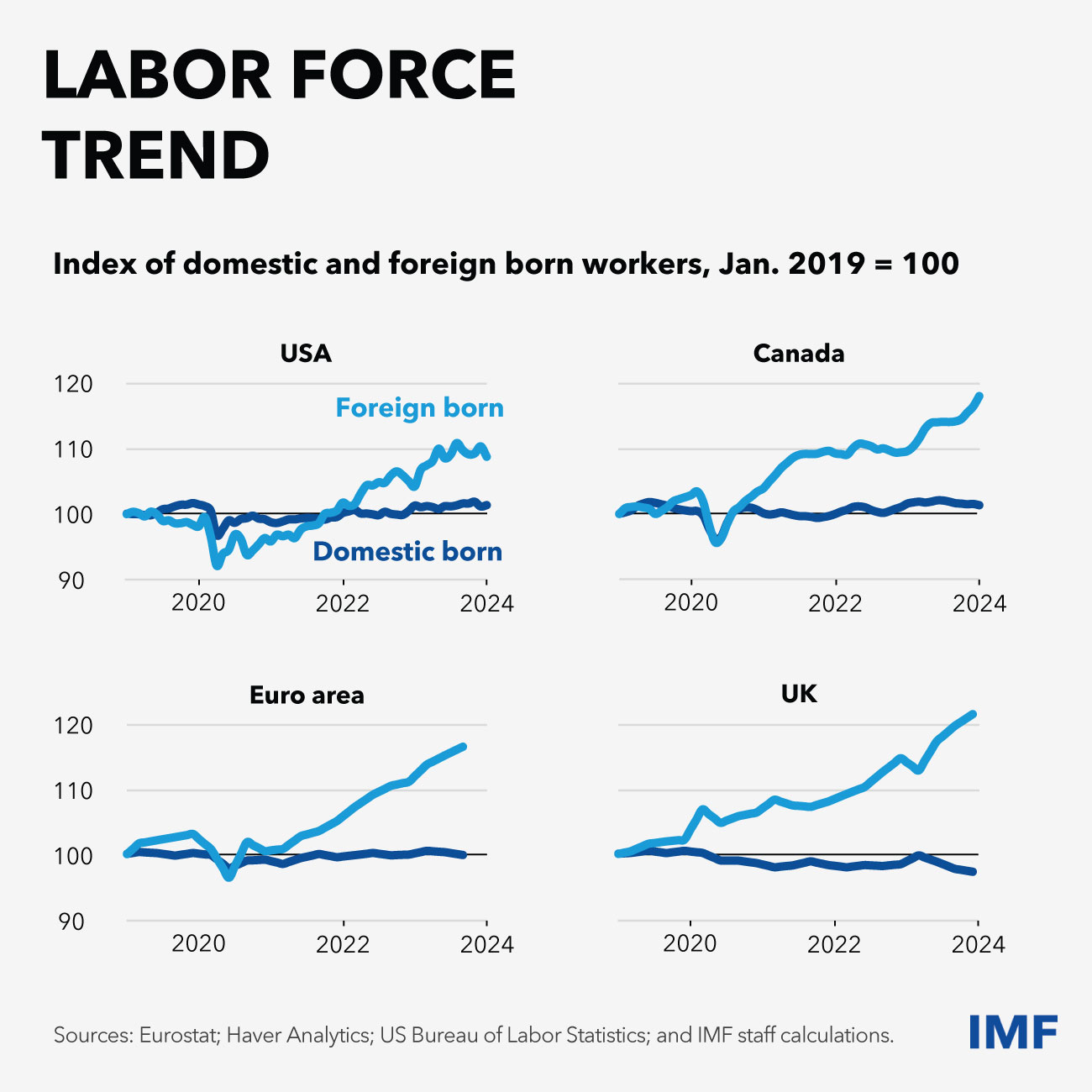 The resilience of the world economy, mostly due to sound macroeconomic fundamentals built over the last years, is helped by strong labor markets and an expanding labor force. The strength of labor supply is partly due to immigration, which has been especially helpful in countries with aging populations.
