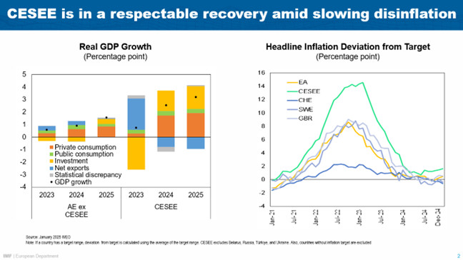 The CESEE region experienced a respectable recovery last year with growth accelerating from 0.8 percent in 2023 to 2.5 percent in 2024.