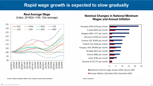 - Poland, Romania, Bulgaria, and Hungary saw wages grow by more than 10 percent last year, partly due to the ripple effects of large public sector and minimum wage increases (RHS).