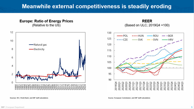 - Energy costs in Europe remain significantly higher than in the US—nearly five times more for natural gas and more than double for electricity (CHART).
