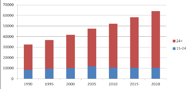 Figure 1: Total and Youth Unemployment by Regions (2010) Source: ILO and IMF data. Figure 2: Labour Force (1990-2020) (thousands) Source: ILO (2011). Figure 3: Labour Market Flexibility 2008 (0=least flexible; 10=most flexible) Source: Economic Freedom of the World Database.