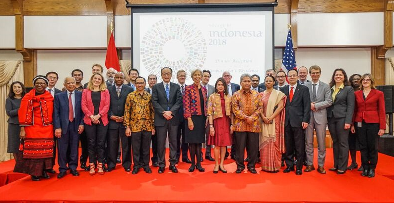 IMF Managing Director Christine Lagarde with Indonesian delegates and dancers during the 2017 Annual Meetings in Washington D.C.