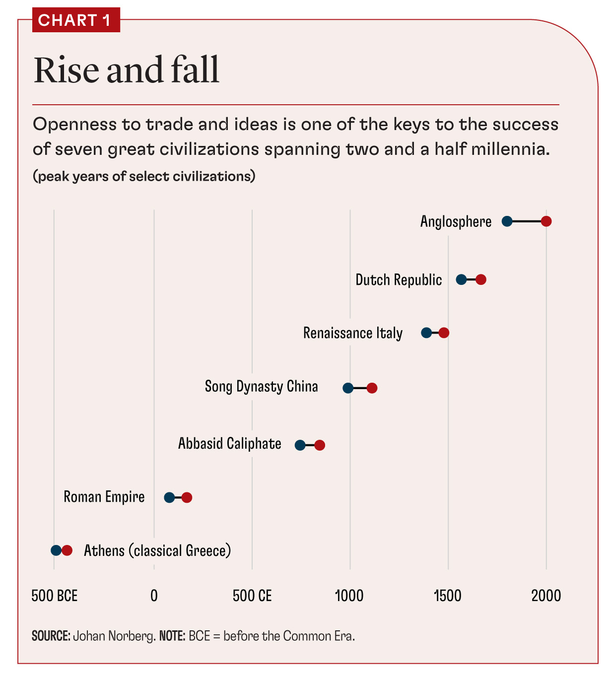 This open mindset is one of the keys to the success of seven great civilizations spanning two and a half millennia. The practical lessons of these cultures could not be more important today as countries choose once again to wall themselves off—physically, economically, digitally, and from new ideas.