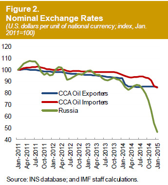 The external pressures from the twin shocks of lower oil prices and Russia’s slowdown, as well as ruble depreciation and dollar appreciation, suggest that greater exchange rate flexibility will be needed for some countries to absorb the shocks, retain competitiveness in the face of upward pressure on the real exchange rate, and prevent a drain on reserves.