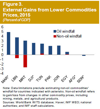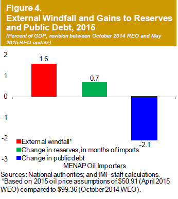 Lower oil prices are expected to help reduce external and fiscal vulnerabilit ies this year. Although benefits from reduced oil import bills are partially offset by declining nonoil commodity export prices (Figure 3), net external gains are still substantial, estimated at $16 billion (1½ percent of GDP) for 2015.