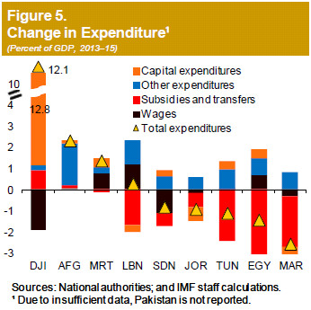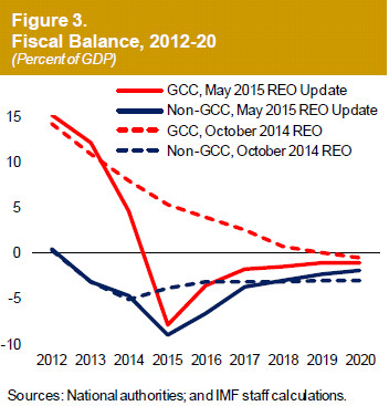 Outside the GCC, where both oil revenue losses and fiscal buffers are smaller (Figure 2), non-oil balances are expected to improve by 2¾ pp of non-oil GDP in 2015, a revision of 1½ pp since last October. In Libya, capital spending is curtailed because of difficult security conditions. A moderately looser fiscal position in Iran (by 1 percent in 2015) reflects lower oil prices and planned increases in capital spending.