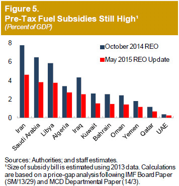 UAEGasoline price highest in GCC (still below int'l levels). Abu Dhabi increased water (+170%) and electricity (+40%) tariffs in Jan-15.