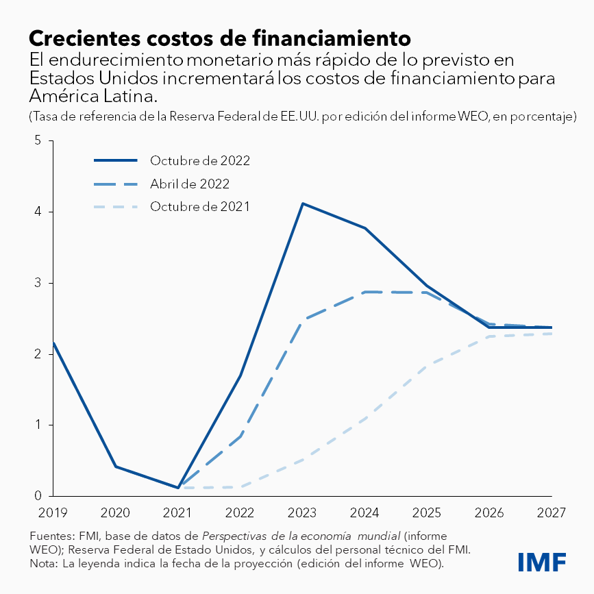Los países de América Latina, que siguen bajo los efectos de dos shocks anteriores: la pandemia y la invasión de Rusia a Ucrania, se enfrentan ahora a un tercer shock: el endurecimiento de las condiciones financieras mundiales.