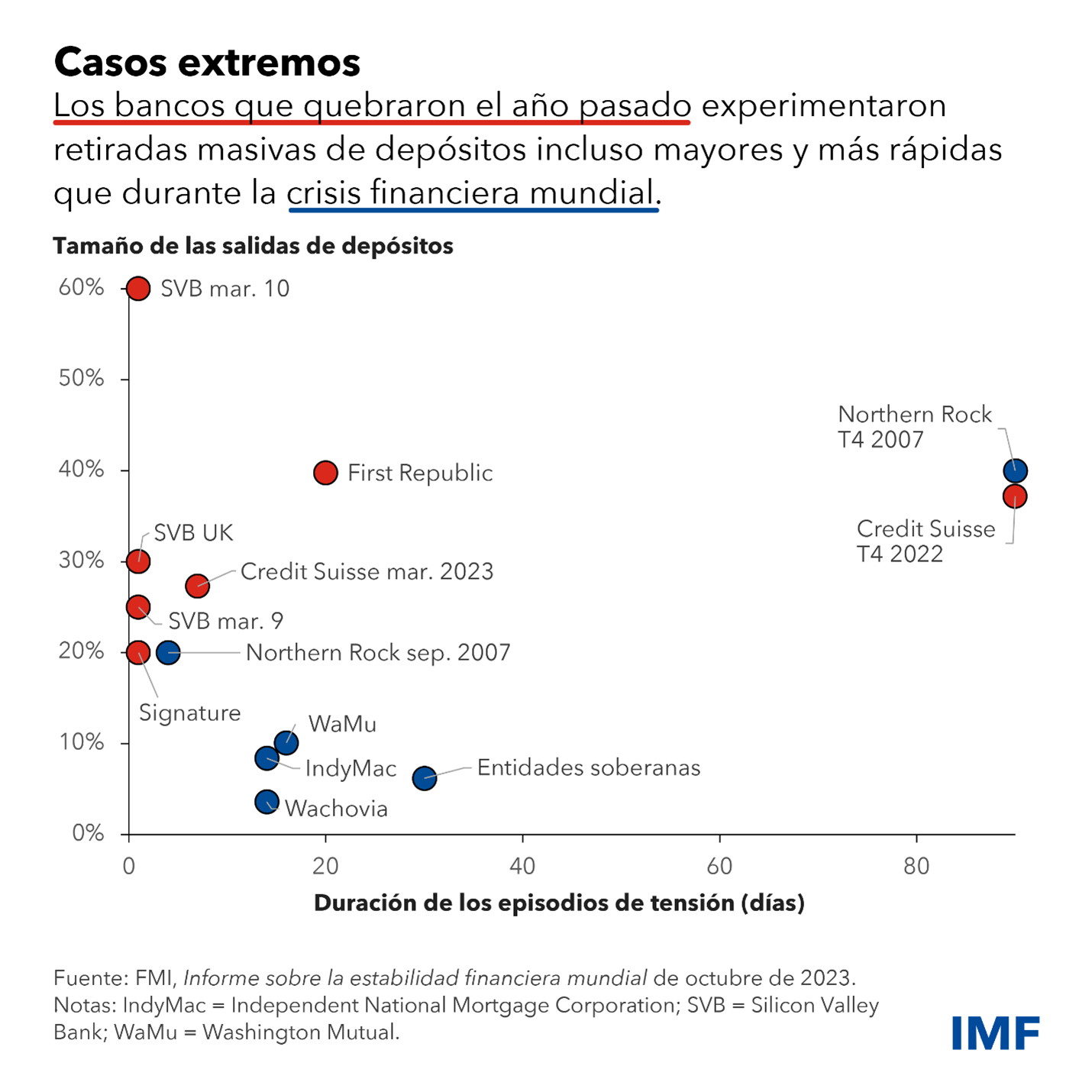 Hace casi un año, Credit Suisse, un banco internacional de importancia sistémica con USD 540.000 millones en activos, y el segundo mayor prestamista suizo, fundado en 1856, quebró y fue vendido a UBS. En Estados Unidos, Silicon Valley Bank, Signature Bank y First Republic Bank quebraron alrededor de la misma fecha, cuando la Reserva Federal elevó las tasas de interés para contener la inflación. Con activos combinados equivalentes a USD 440.000 millones, estos casos representaron la segunda, tercera y cuarta resoluciones bancarias más importantes desde la creación de la Corporación Federal de Seguros de Depósitos durante la Gran Depresión.