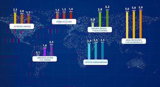 En el caso de las economías avanzadas, se proyecta que el crecimiento se desacelere levemente, de 1,7% en 2019 a 1,6% en 2020 y 2021. Las economías que dependen de las exportaciones, como Alemania, deberían beneficiarse de la reactivación de la demanda externa, al tiempo que se pronostica una desaceleración del crecimiento de Estados Unidos a medida que se disipa el estímulo fiscal.