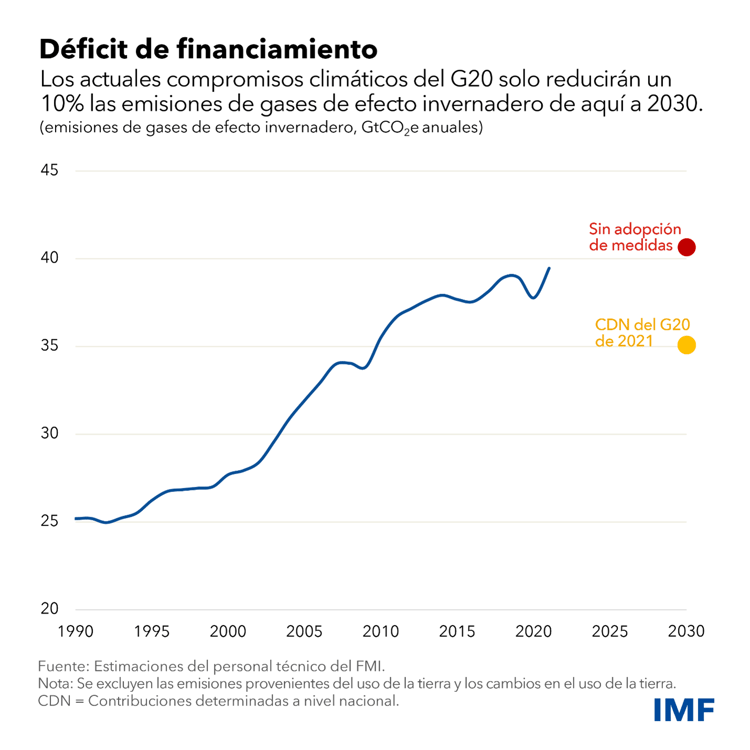 Este trabajo también está estrechamente vinculado a otras iniciativas del FMI, como el Tablero de Indicadores de Cambio Climático del FMI, que es otra iniciativa estadística dedicada a proporcionar datos climáticos pertinentes para el análisis económico. También está vinculado al proyecto conjunto del FMI dirigido a ofrecer orientación para la implementación de los principios de alto nivel del G20 sobre las taxonomías y otros enfoques para ajustarse a las finanzas sostenibles.