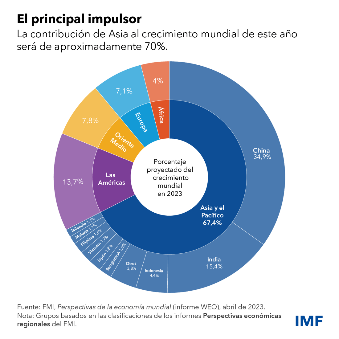 El principal fenómeno ha sido la reapertura de China, donde el aumento del consumo está impulsando el crecimiento en la región, pese al debilitamiento de la demanda en el resto del mundo. Entre los riesgos para las perspectivas figuran los efectos indirectos de un endurecimiento de la política monetaria mayor de lo previsto en Estados Unidos y las perturbaciones en las cadenas de suministro asociadas con la fragmentación geoeconómica.