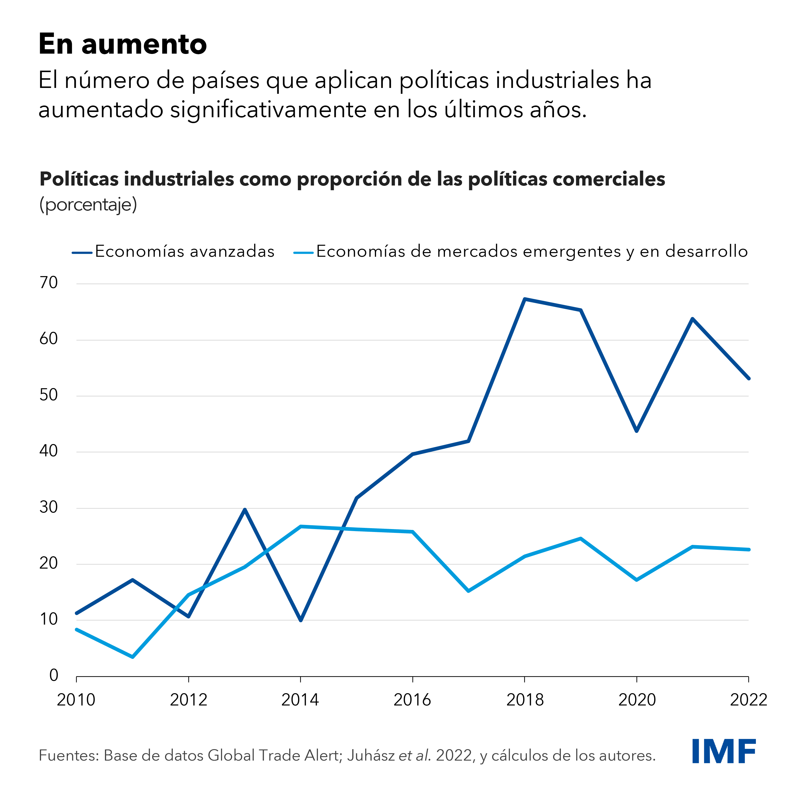 En un contexto de preocupaciones por la seguridad, muchos países están reforzando su política industrial para impulsar la innovación en sectores específicos con la esperanza de reactivar la productividad y el crecimiento a largo plazo. En todo el mundo están surgiendo grandes iniciativas, como la Ley de Ciencia y CHIPS (creación de incentivos de ayuda a la producción de semiconductores), que financiará la investigación nacional y la fabricación de semiconductores, el Plan Industrial del Pacto Verde de la Unión Europea, que apoya la transición del bloque hacia la neutralidad climática, la nueva dirección adoptada por Japón para las políticas económicas e industriales del país, o la Ley K-Chips de Corea, además de otras políticas que hace ya tiempo vienen implementando otras economías de mercados emergentes como China.