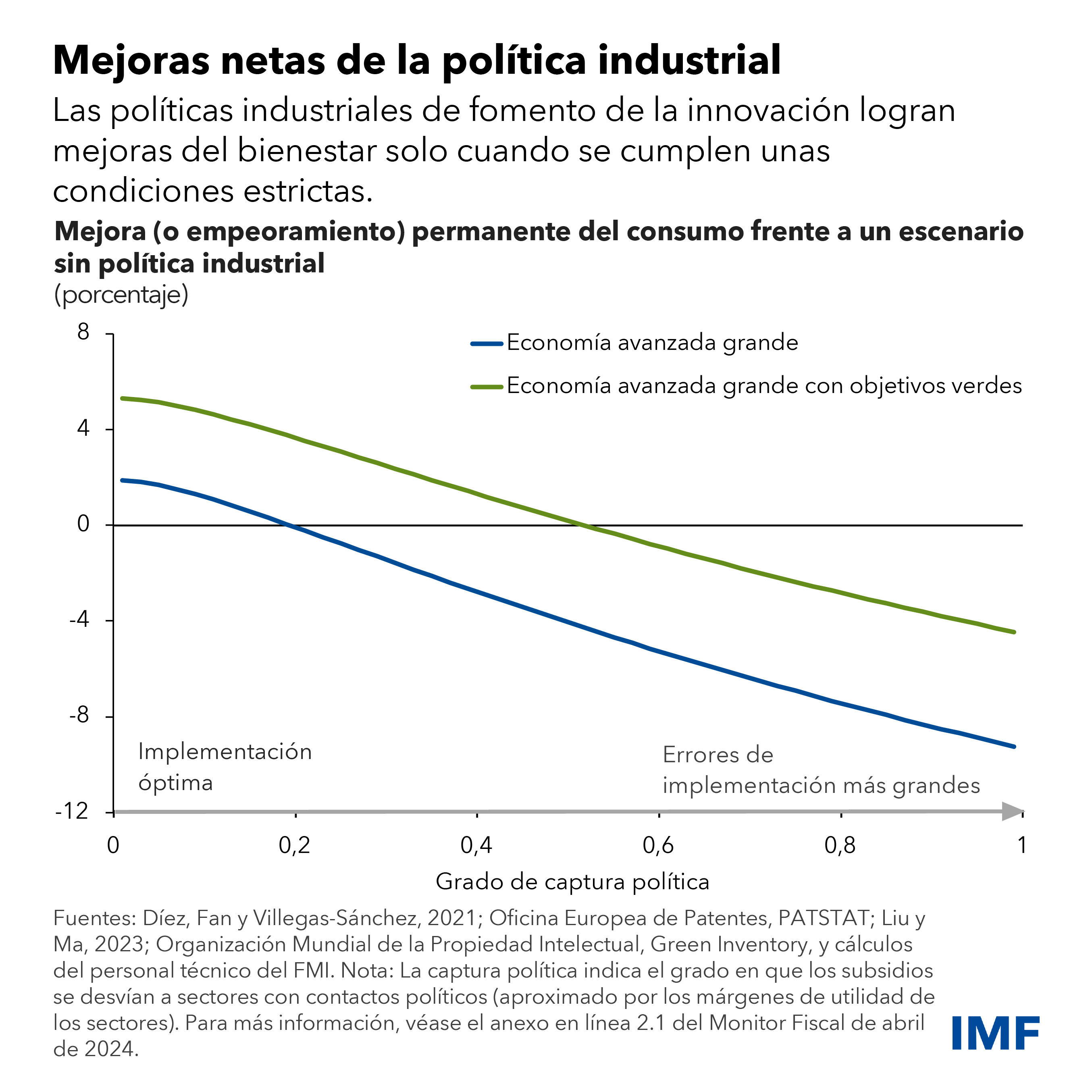 En algunos casos, la política industrial puede estar justificada, como cuando apoya a sectores que generan una gran difusión de conocimientos hacia la economía nacional (por ejemplo, el sector de semiconductores). Otro caso importante de uso de la política industrial es el impulso de la innovación verde; lograr la neutralidad en carbono exigirá la creación de tecnologías que todavía no existen. Pero los subsidios a la innovación verde deben ser transparentes, centrarse en objetivos ambientales y complementarse con un sistema sólido de tarificación del carbono para minimizar los costos fiscales.