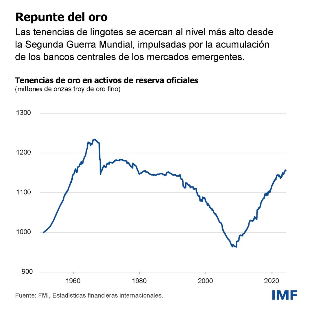 También observamos que las sanciones financieras del pasado hicieron que los bancos centrales realizaran ajustes moderados en sus carteras de reservas, alejándose de las divisas, que corren el riesgo de ser congeladas y reasignadas, en favor del oro, que puede almacenarse en el país y por tanto está libre del riesgo de sanciones. Ese estudio también reveló que la demanda de oro por parte de los bancos centrales aumenta ante la incertidumbre de la política económica mundial y el riesgo geopolítico mundial. Estos factores podrían explicar el aumento de la acumulación de oro por parte de varios bancos centrales de mercados emergentes. Sin embargo, antes de atribuir una importancia excesiva a esta tendencia, es importante recordar que la proporción de oro en las reservas se mantiene en niveles históricamente bajos.