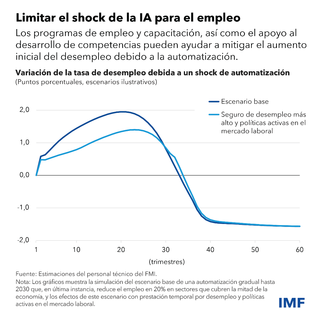 Indudablemente, habrá diferencias notables en la forma en que la IA incidirá en los distintos mercados emergentes y economías en desarrollo, y por tanto en cómo deberían responder las autoridades. Los trabajadores de esos países están menos expuestos a la IA, pero también menos amparados por programas formales de protección social como el seguro de desempleo, porque el sector informal es mucho más importante en términos relativos. Los enfoques innovadores que aprovechen las tecnologías digitales pueden facilitar una cobertura ampliada de los programas de asistencia social en estos países.
