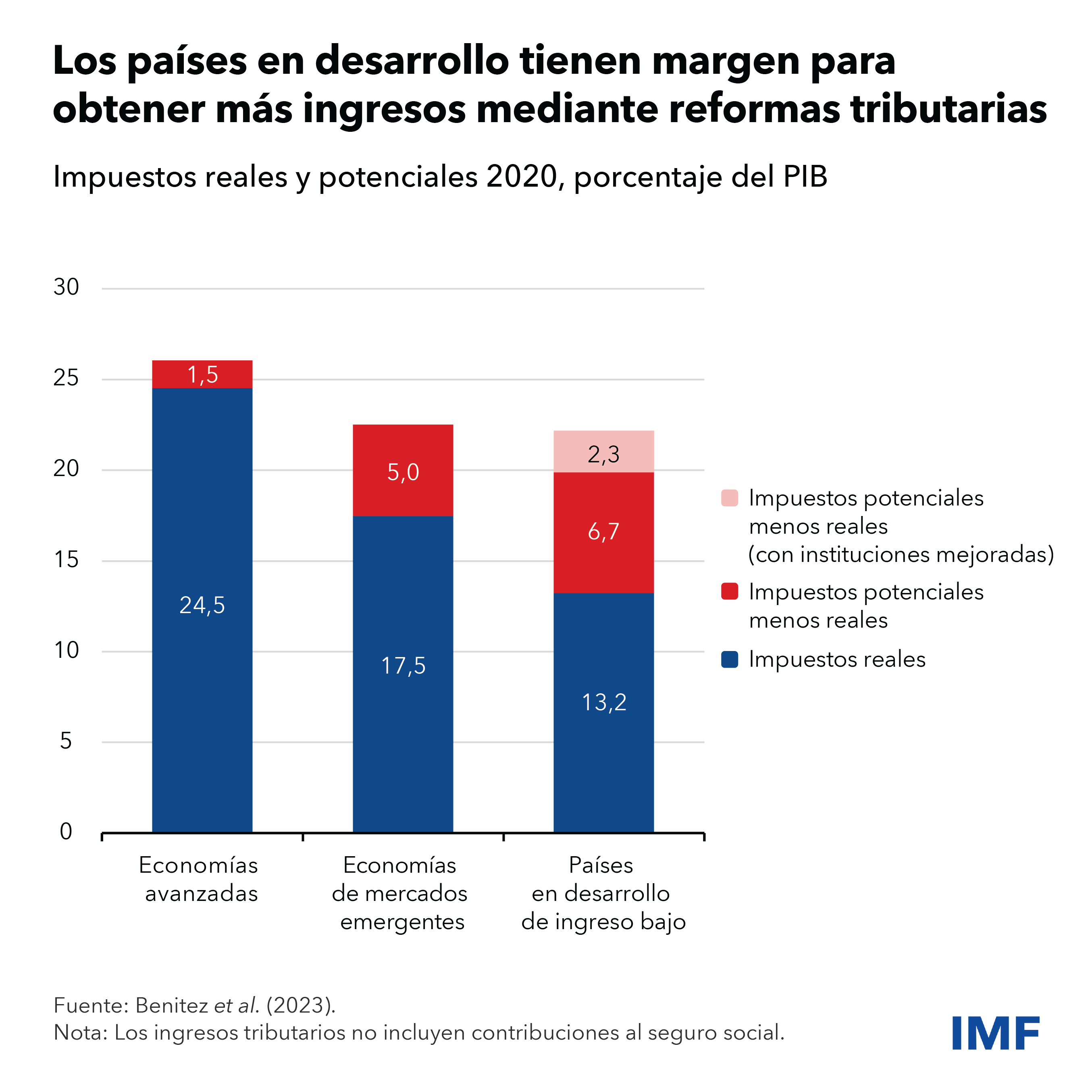 En los países en desarrollo, existe amplio margen para incrementar los ingresos mediante reformas tributarias, llevándolos hasta niveles del 9% del PIB según nuestros estudios. Ahora bien, es fundamental adoptar un enfoque progresivo, lo que significa que hay que asegurarse de que quienes pueden permitirse pagar más impuestos contribuyan de manera justa y proporcional. Gravar las rentas del capital y las propiedades inmobiliarias, por ejemplo, es en definitiva una forma relativamente progresiva de incrementar los ingresos tributarios.
