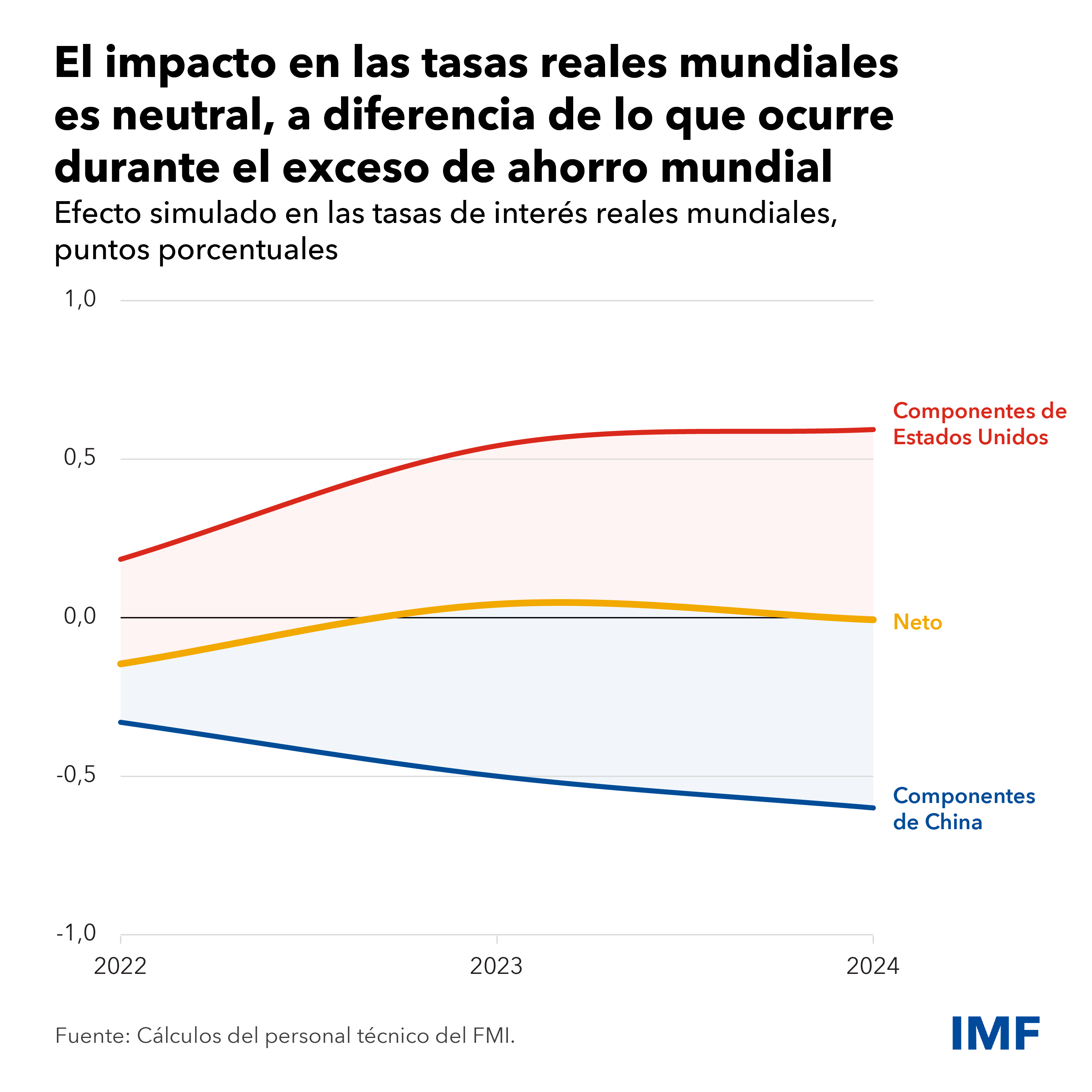 - A diferencia de lo que ocurrió en la década de 2000, cuando el exceso de ahorro originado en las economías emergentes de Asia generó desequilibrios mundiales y redujo las tasas de interés mundiales, en este caso no hay un exceso de ahorro mundial. Las tasas reales mundiales fuera de China han aumentado en lugar de disminuir.