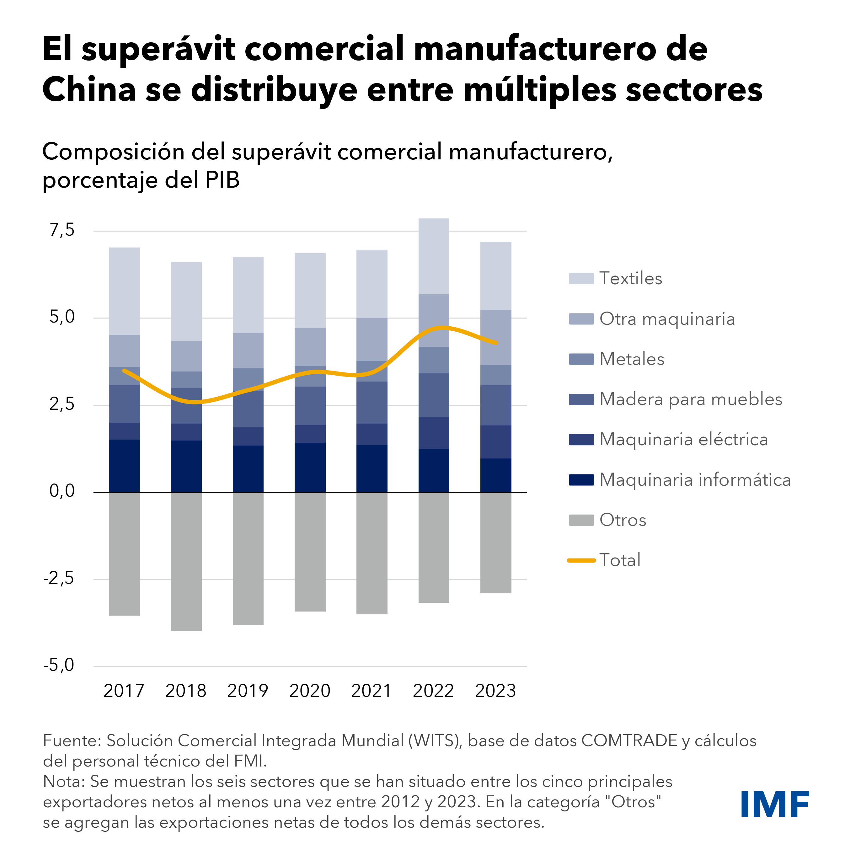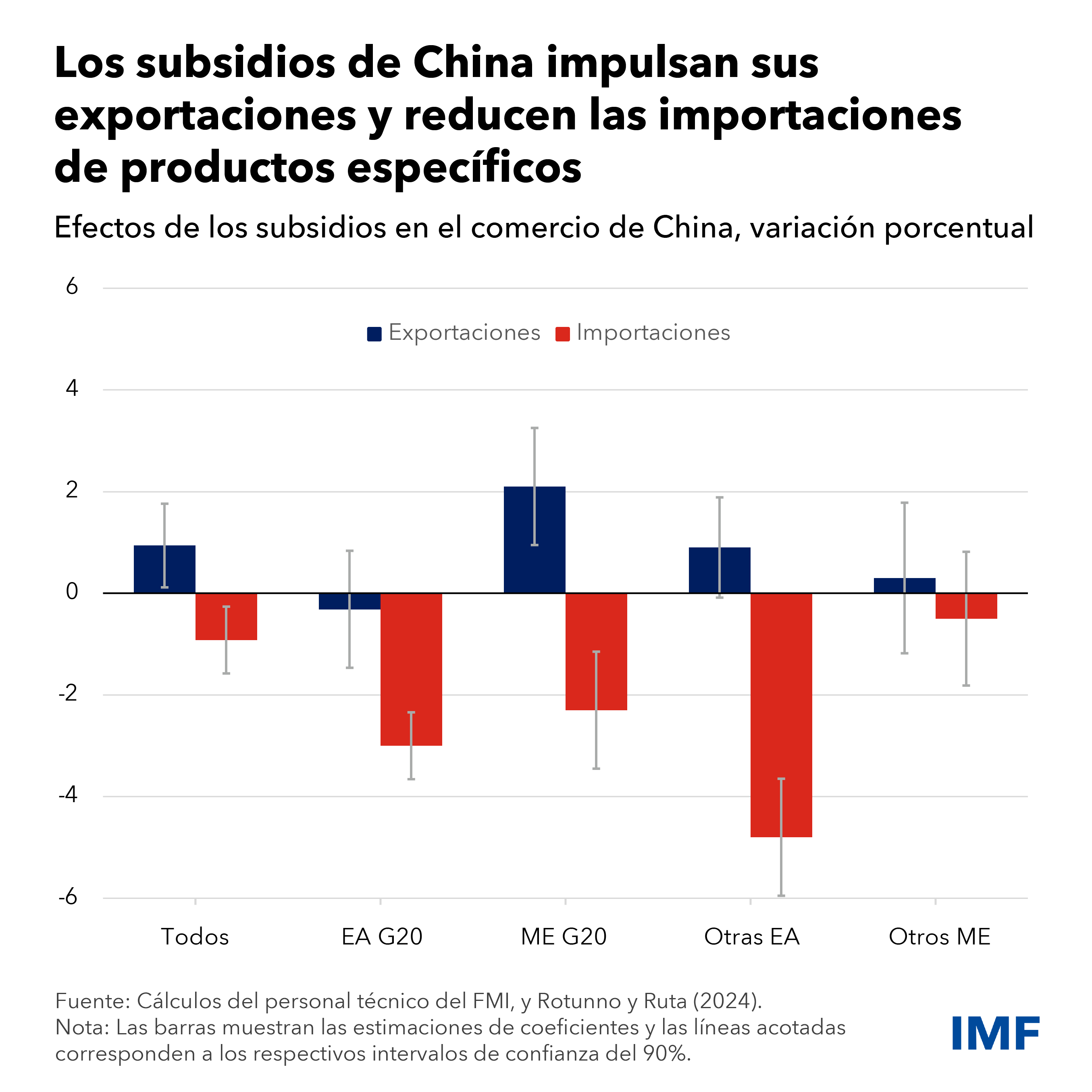 Ahora bien, ¿qué ocurre con las políticas industriales y comerciales que inquietan a los socios comerciales por la "sobrecapacidad" de China? Independientemente del saldo externo general, el apoyo estatal a determinados sectores exportadores o que compiten con las importaciones puede impulsar la actividad en estos sectores, y también puede mejorar sustancialmente la competitividad de costos a través del aprendizaje basado en la experiencia o las economías de escala. El consiguiente impacto macroeconómico podría ser significativo, según el volumen y la importancia del sector y la magnitud del subsidio.