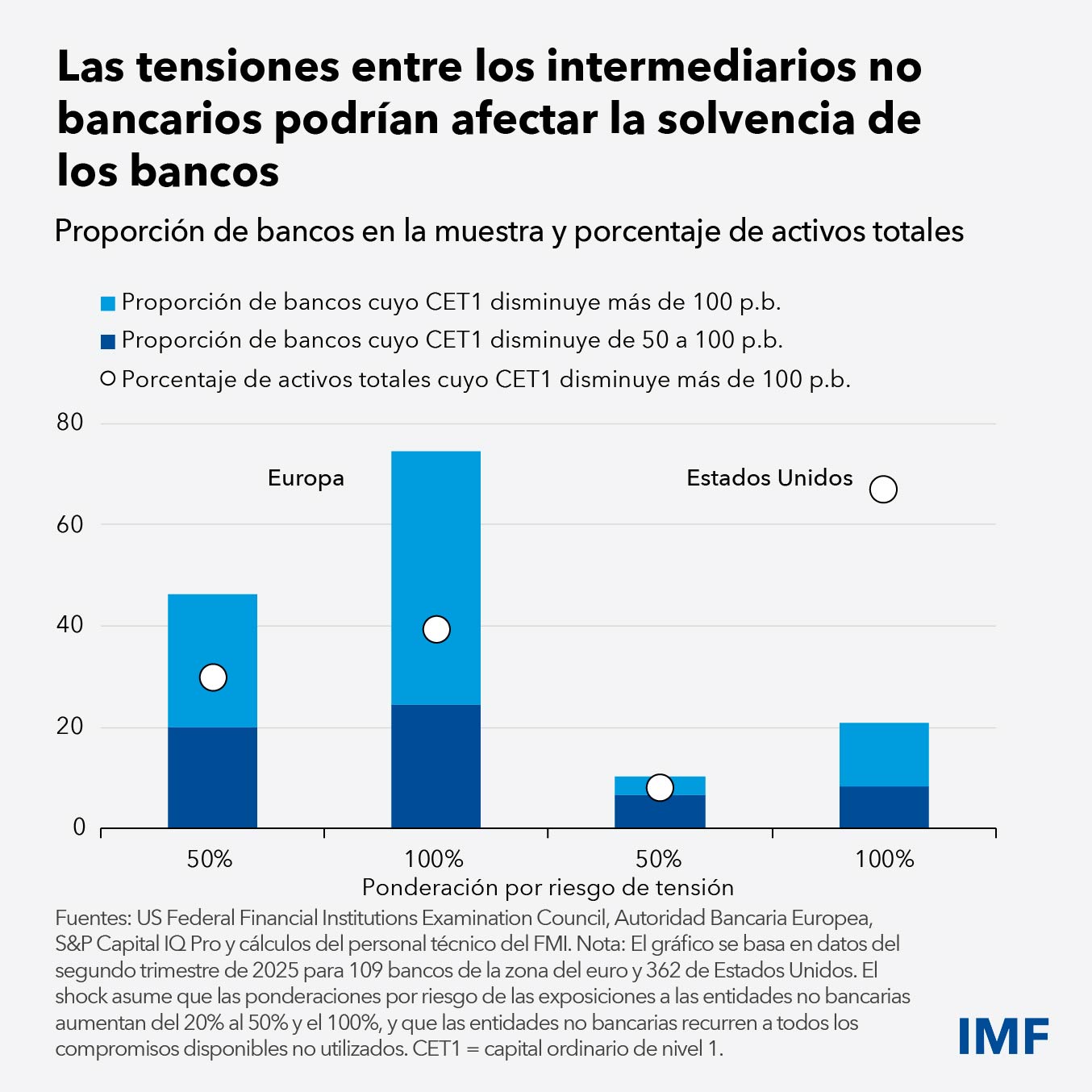 Como explicamos en la nueva edición de nuestro Informe sobre la estabilidad financiera mundial (informe GFSR), las pruebas de tensión muestran que las vulnerabilidades de estos intermediarios no bancarios pueden transmitirse con rapidez al sistema bancario central, potenciando los shocks y complicando la gestión de crisis.