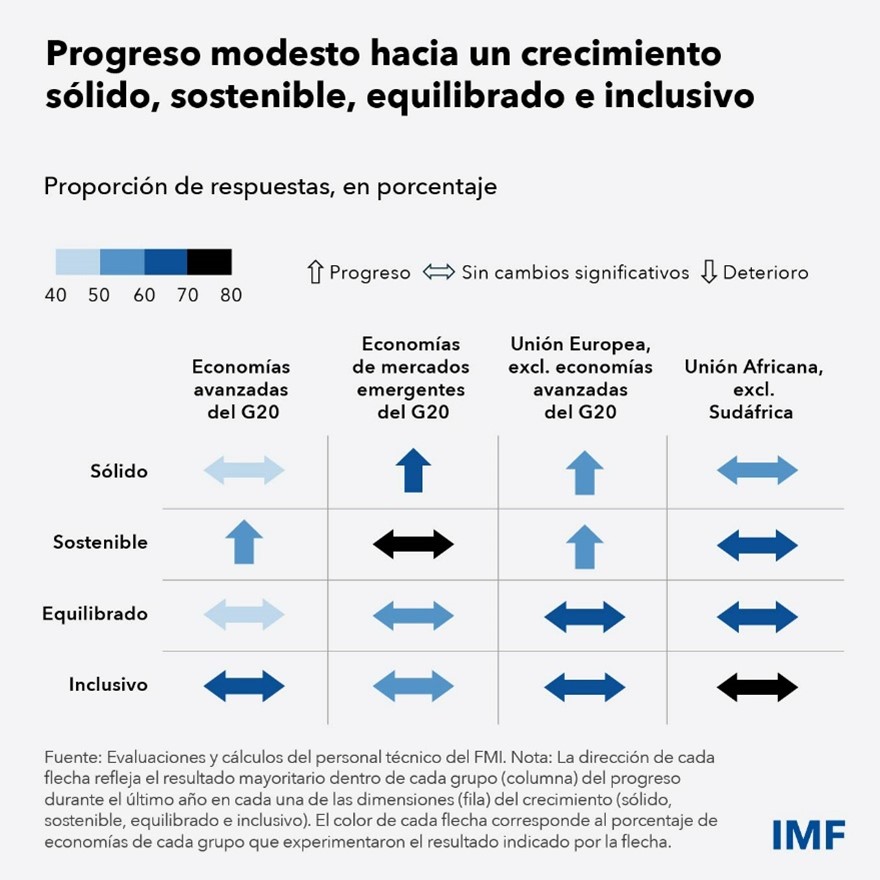 Dado que la incertidumbre a corto plazo sigue siendo elevada y que la lista de factores adversos es extensa, las perspectivas de lograr un crecimiento sólido, sostenible, equilibrado e inclusivo en los próximos años se presentan complicadas. En este contexto, es más importante que nunca reforzar el impulso, aunque sea tenue, en todas las dimensiones del crecimiento.