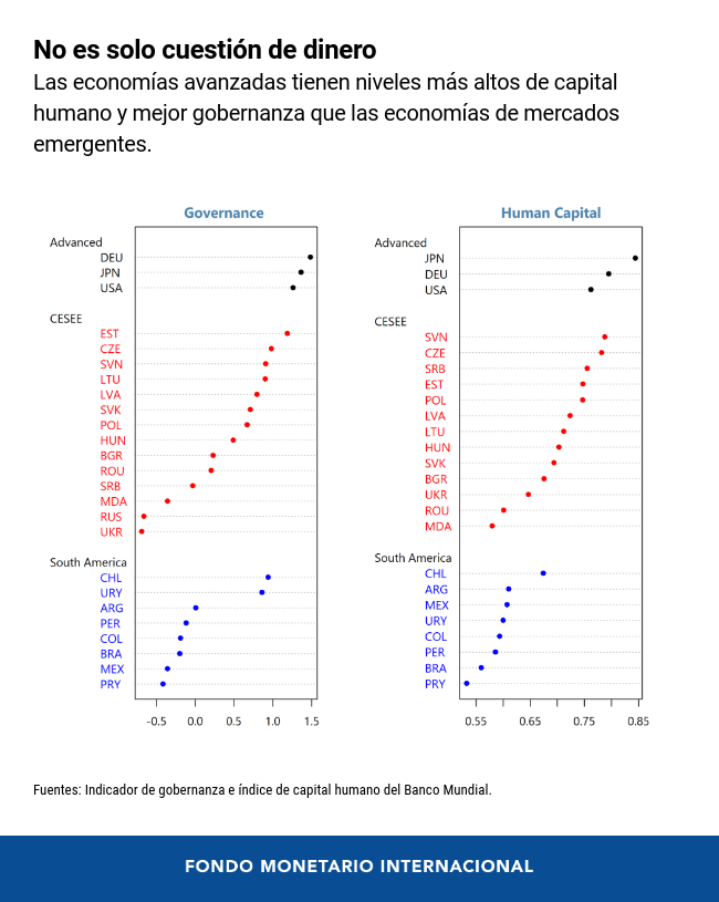 Nuestro estudio sostiene que los países no crecerán con más rapidez ni se acercarán a los niveles de ingreso de las regiones más ricas del mundo si el capital humano, la gobernanza y el clima de negocios no mejoran.