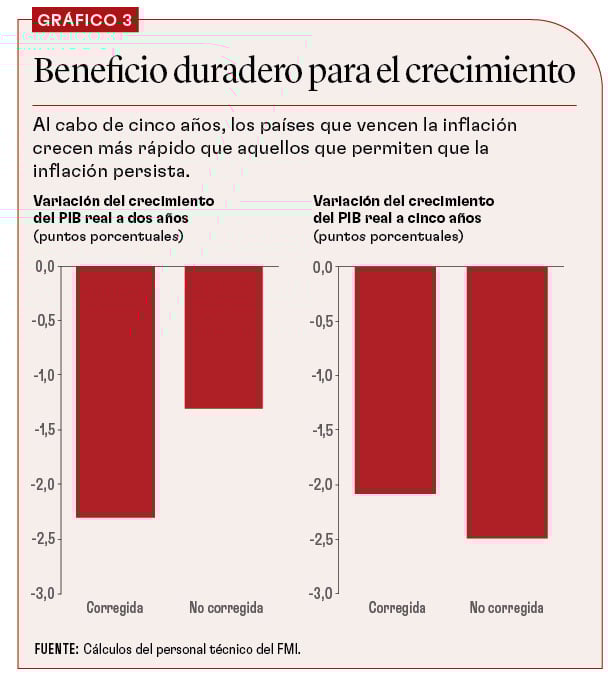 No es fácil luchar contra la inflación, pero es importante reconocer las ventajas de la estabilidad de precios. Históricamente, los países que corrigieron la inflación registraron menos crecimiento económico a corto plazo que los demás, pero esa relación se invirtió a mediano y largo plazo: cinco años después del shock inflacionario, gozaban de más crecimiento y menos desempleo.